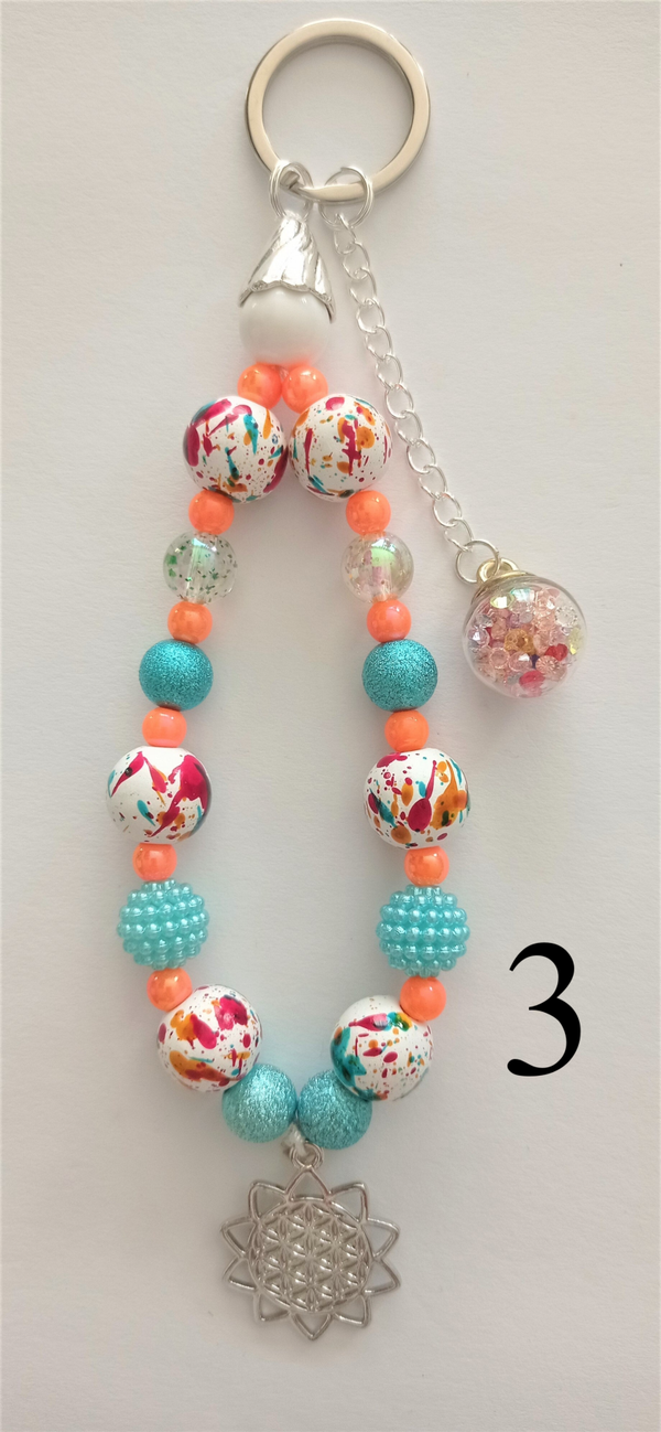 Schlüsselanhänger in leuchtenden Farben, Glaskugel und Sonnen Charms