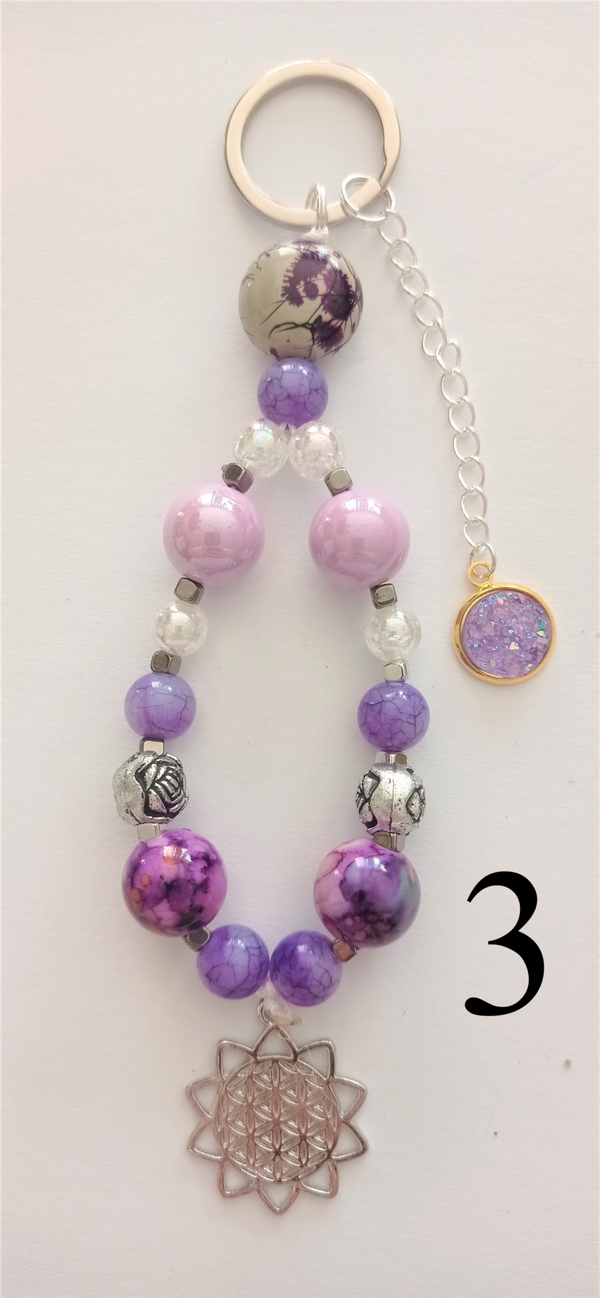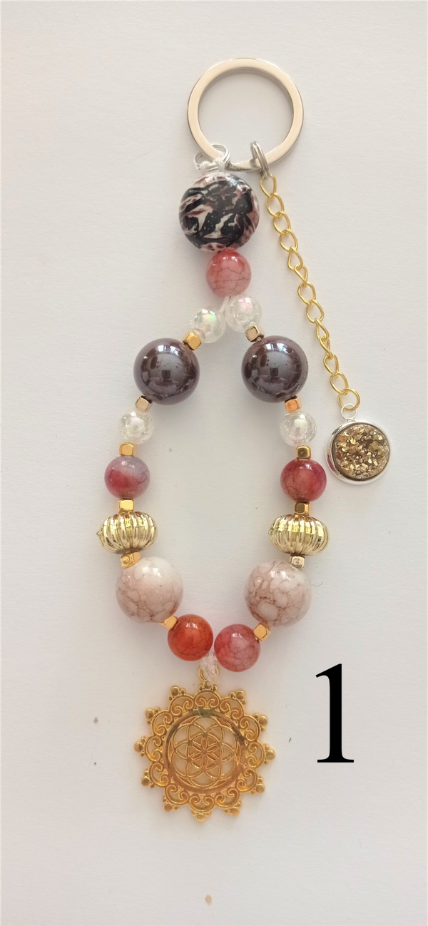 Edler Schlüsselanhänger aus glänzenden Glasperlen, Steinperlen, Zwischenperlen und Pentagram-Anhänger