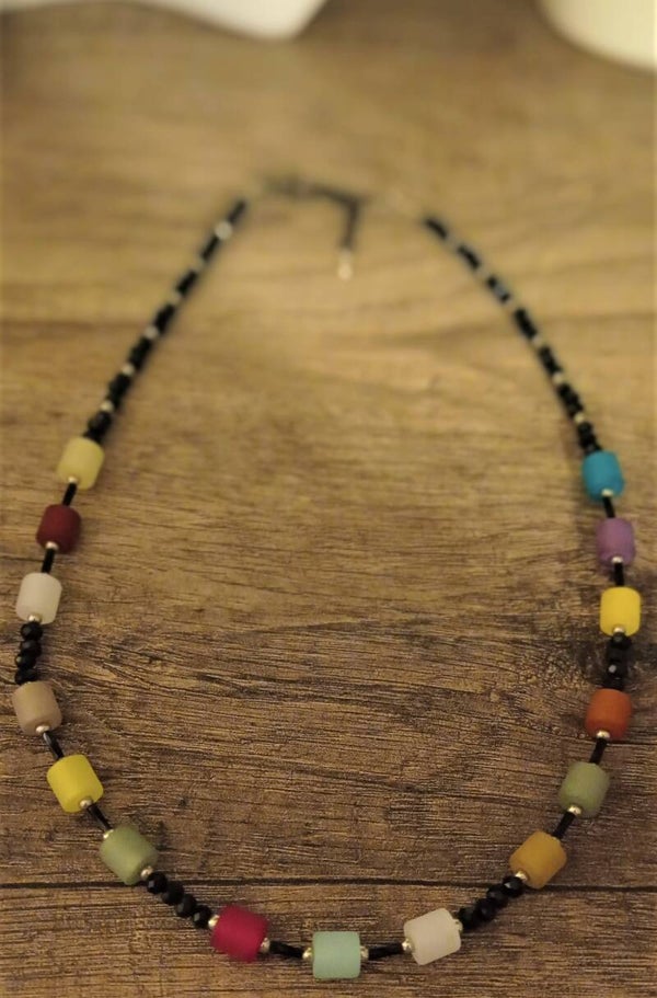 Collier Polarisröhren Schwarz / Bunt mit Schmuckbox