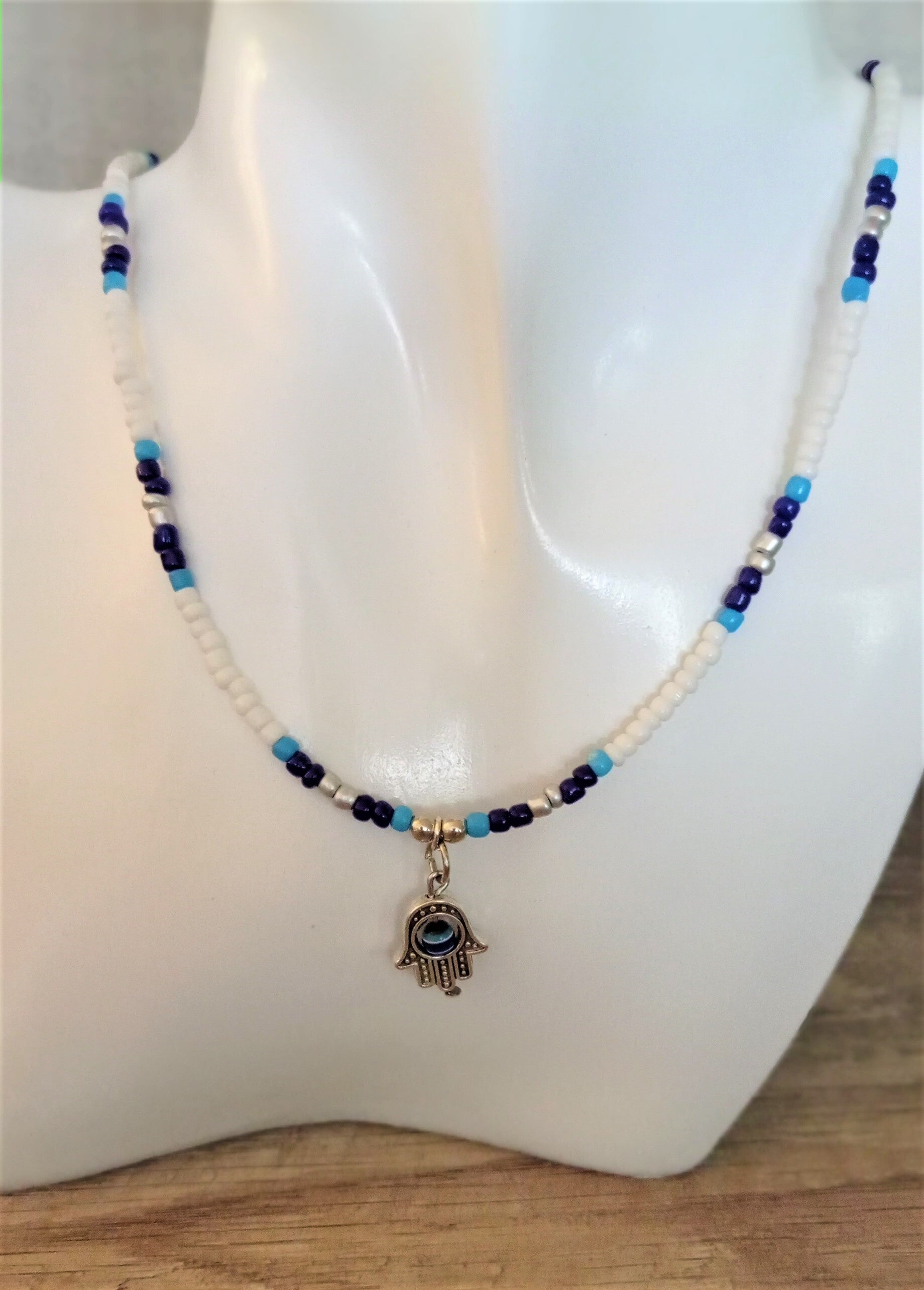 Rocailles Kette mit Anhänger "Hand von Fatima".