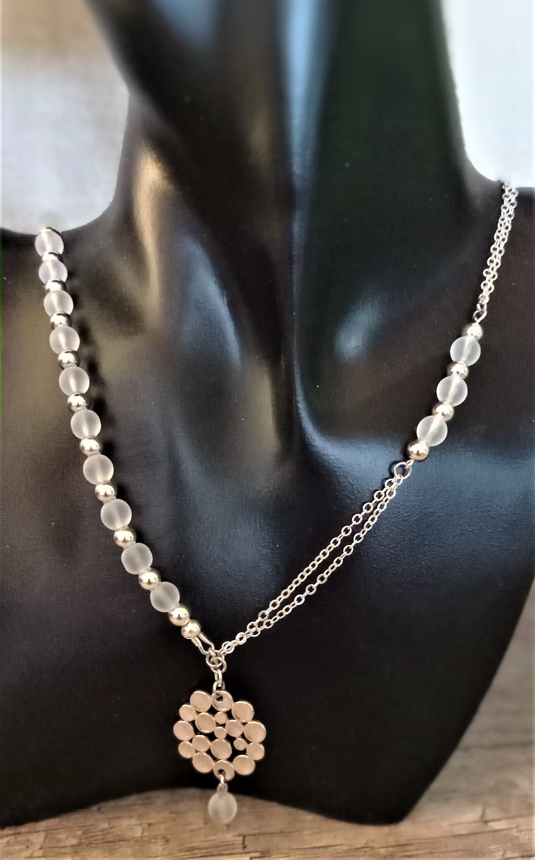 Elegante Kette mit klaren Mondsteinperlen und Gliederkette.
