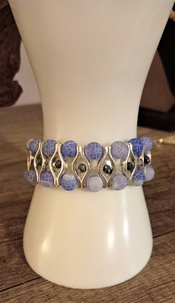 Breites Armband aus Achat- und Glasperlen im Perlenrahmen.